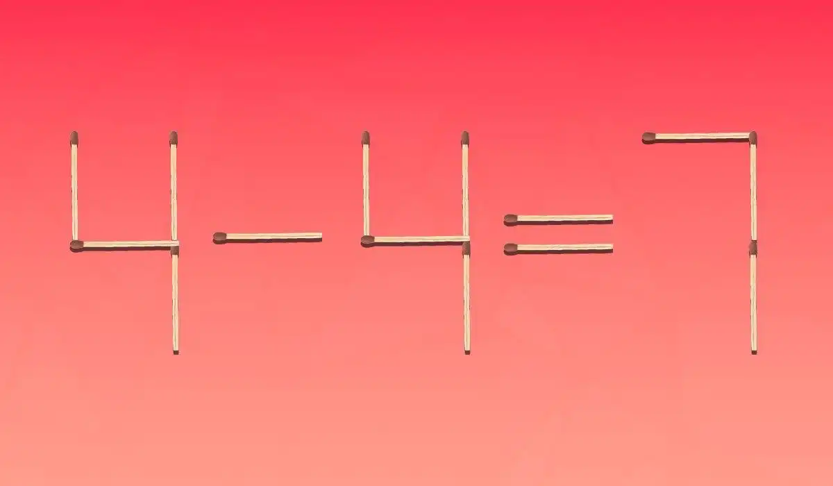 Przed tobą klasyczna łamigłówka z zapałkami: błędne równanie 4-4=7. Twoim zadaniem jest przesunięcie tylko jednej zapałki, aby stało się ono matematycznie poprawne. Kluczem jest spojrzenie na cyfry nie jako na stałe symbole, ale jako na kształty, które można zmienić.
