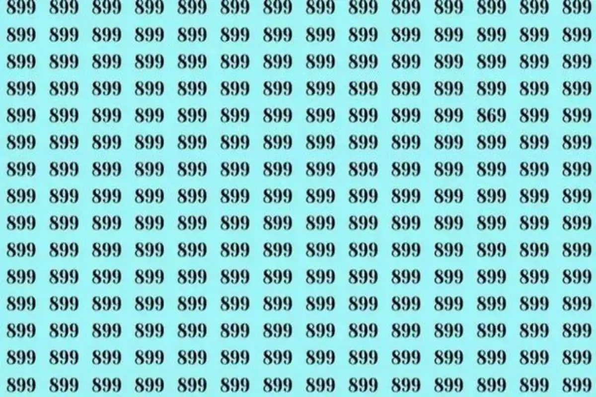 W morzu identycznych liczb 899 ukryła się jedna inna – 869. Twoje zadanie to znaleźć ją w 20 sekund. Kluczem jest systematyczne skanowanie wzrokiem i przełamanie automatycznego wzorca rozpoznawania, który podpowiada mózgowi, że wszędzie widzi to samo.