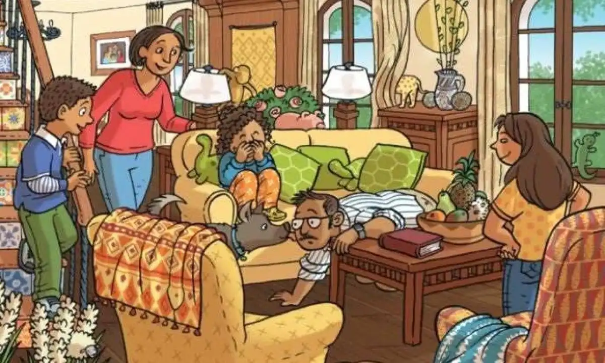 Rodzina poszukuje zagubionych przedmiotów – szczotki i pędzla – w swoim domu. Czy twoje oko jest na tyle bystre, by dostrzec je wśród wielu szczegółów w zaledwie 22 sekundy? Kluczem jest zmiana perspektywy i szukanie kształtów, a nie przedmiotów.