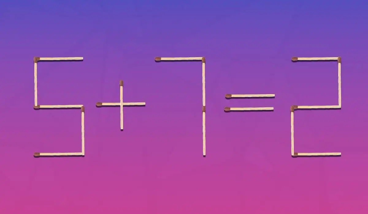 Przed tobą klasyczna łamigłówka z zapałkami: równość 5+7=2 jest oczywiście błędna. Twoim zadaniem jest przesunięcie tylko jednej zapałki, aby stała się matematycznie poprawna. Kluczem jest potraktowanie zapałek jako elastycznego konstruktora, a nie sztywnych cyfr.