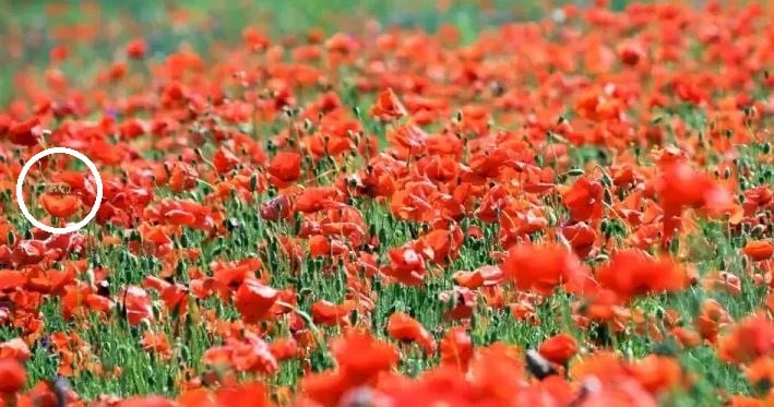 Na czerwonym morzu maków ukrywa się mała, czarno-żółta pszczoła. Twoje zadanie? Znaleźć ją w zaledwie 14 sekund. Sekret tkwi w tym, by nie patrzeć na całość, ale szukać drobnego zaburzenia w jednolitym wzorze płatków.