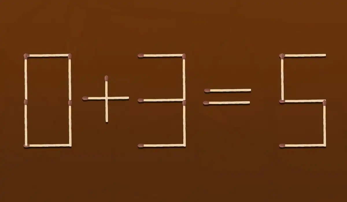 Twoim zadaniem jest naprawienie błędnego równania 0+3=5, ułożonego z zapałek, poprzez przestawienie tylko jednej z nich. Kluczem jest spojrzenie na liczby nie jako stałe symbole, ale jako kształty, które można zmieniać. Czasem rozwiązanie kryje się w przekształceniu jednej cyfry w inną.