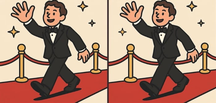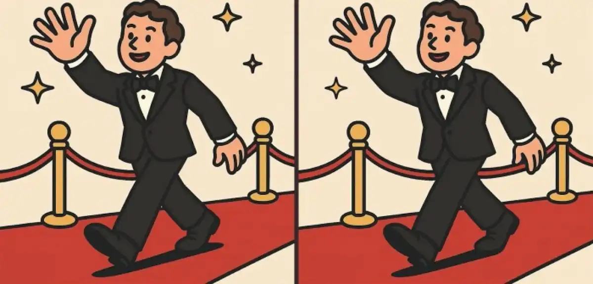 Dwa pozornie identyczne obrazy przedstawiające eleganckiego mężczyznę idącego po czerwonym dywanie skrywają trzy subtelne różnice. Twoim zadaniem jest odkrycie ich wszystkich w zaledwie 91 sekund. Kluczem do sukcesu jest systematyczne skanowanie obrazu partiami, a nie chaotyczne szukanie.