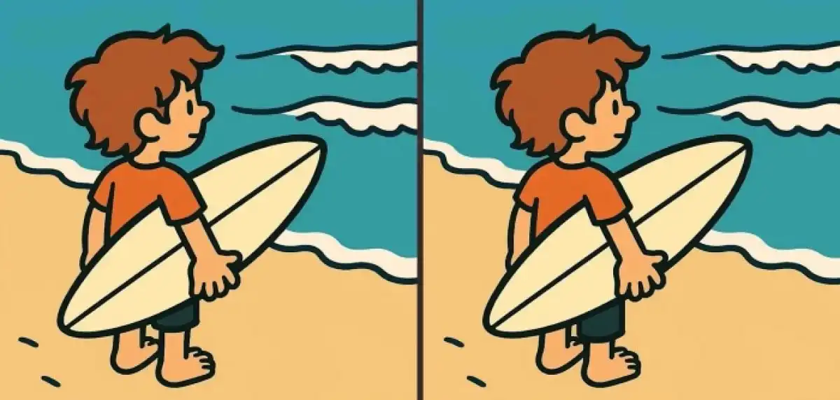 Przed tobą klasyczna łamigłówka na spostrzegawczość: dwa niemal identyczne obrazki surfera, między którymi ukryto trzy subtelne różnice. Twoim zadaniem jest odnaleźć je wszystkie w zaledwie 43 sekundy. Kluczem do sukcesu jest systematyczne skanowanie obrazu partiami, a nie chaotyczne szukanie.
