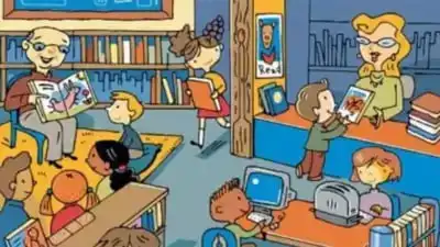 Czy kiedykolwiek czułeś satysfakcję z rozwiązania zagadki, która na pierwszy rzut oka wydaje się niemożliwa? To właśnie uczucie towarzyszy łamigłówkom wizualnym, które są doskonałym treningiem dla umysłu. Dziś proponuję ci wyzwanie, które testuje uwagę i percepcję. Spójrz na ilustrację przedstawiającą wnętrze biblioteki. Jest tam mnóstwo szczegółów: dzieci, komputery, niezliczone rzędy książek. Twoim celem jest znalezienie ukrytej, wysokiej drabiny bibliotecznej na kółkach. Masz tylko 5 sekund! Gotowy? Start!