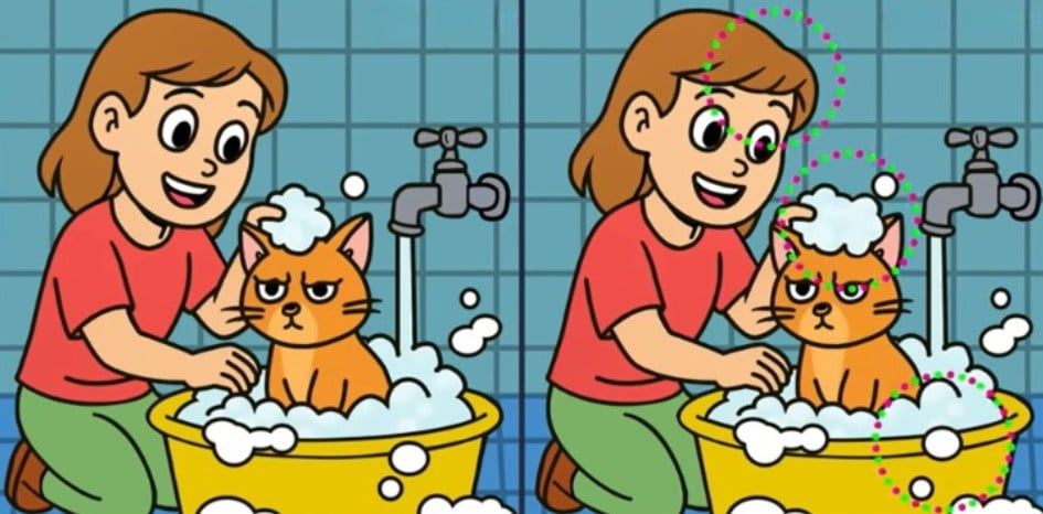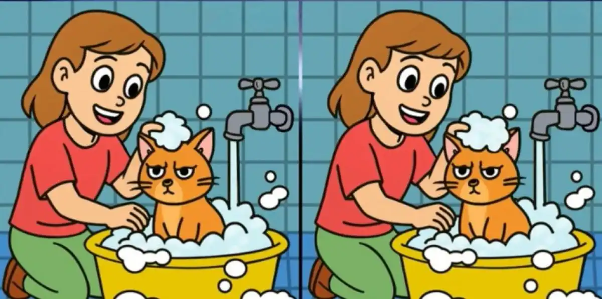 | Znajdź różnice | Uważność i spostrzegawczość | Dzisiejsze zadanie z dziewczynką i kotem |