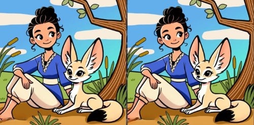 Pierwsza różnica znajduje się na twarzy dziewczynki. Na jednym obrazku ma ona widoczną łzę pod okiem, a na drugim – nie. Druga rozbieżność dotyczy ogona lisa. Na jednej wersji jego koniec jest ostry i wyraźny, na drugiej – bardziej rozmyty lub krótszy. Trzecia, często najtrudniejsza do zauważenia, ukryta jest w tle. Liść lub gałązka po prawej stronie, nad grzbietem lisa, ma nieco inny kształt lub jest ich inna liczba.
