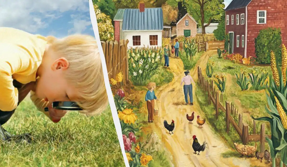 Na pozornie spokojnym obrazku ukryty jest poważny błąd logiczny, który burzy harmonię tej sielskiej sceny. Kluczem do rozwiązania jest porzucenie pierwszego wrażenia i przeanalizowanie każdego elementu z osobna – wtedy nietypowy detal sam się ujawni.