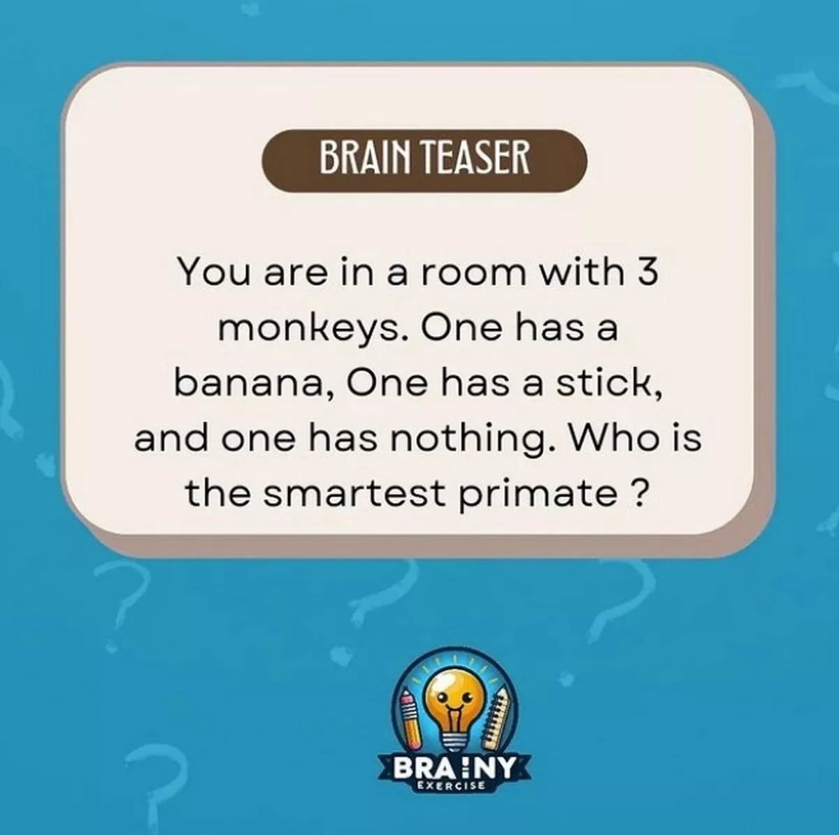 W pokoju są trzy małpy: jedna z bananem, druga z kijem, trzecia z niczym. Która jest najmądrzejsza? Kluczem do rozwiązania jest wyjście poza oczywiste ramy i zrozumienie, kto tak naprawdę należy do rodziny naczelnych.