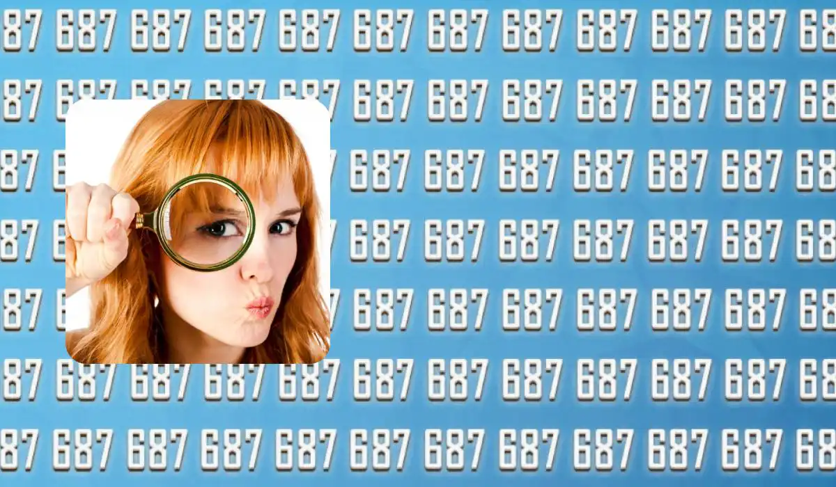 Przygotuj swój umysł do szybkiego skanu. Oto zadanie: na obrazku wypełnionym rządami liczby 687 ukryła się jedna, jedyna inna liczba. Twoim celem jest jej namierzenie w ciągu 8 sekund. To ćwiczenie nie tylko bada Twoją uwagę, ale także odporność na złudzenie wzrokowe stworzone przez powtarzalny wzór. Nie daj się zwieść pozornej jednolitości!