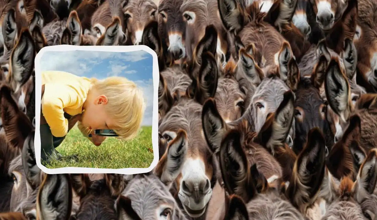 Wśród stada spokojnych osłów ukrył się jeden byk. Jego sylwetka jest tak sprytnie wkomponowana w tło i podobieństwo do innych zwierząt, że odnalezienie go w 8 sekund to prawdziwe wyzwanie dla uwagi i spostrzegawczości. Kluczem jest skupienie się nie na szczegółach, a na ogólnym kształcie i konturach.