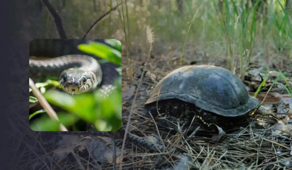 Czy kiedykolwiek czułeś, że twój mózg potrzebuje rozgrzewki? Oto doskonała okazja. Przed tobą niezwykłe zdjęcie przyrody. Na pierwszy rzut oka widzimy spokojną scenę z dużym żółwiem w skorupie, otoczoną suchą i zieloną trawą, gałęziami i drzewami. Ale jest tu coś więcej. Ktoś inny obserwuje tę scenę z ukrycia. To wąż, prawdziwy ekspert od pozostawania niezauważonym. Twoim wyzwaniem jest go znaleźć. Spróbuj ustawić timer na 10 sekund i sprawdź, czy potrafisz przełamać iluzję i dostrzec to, czego nie widzą inni.