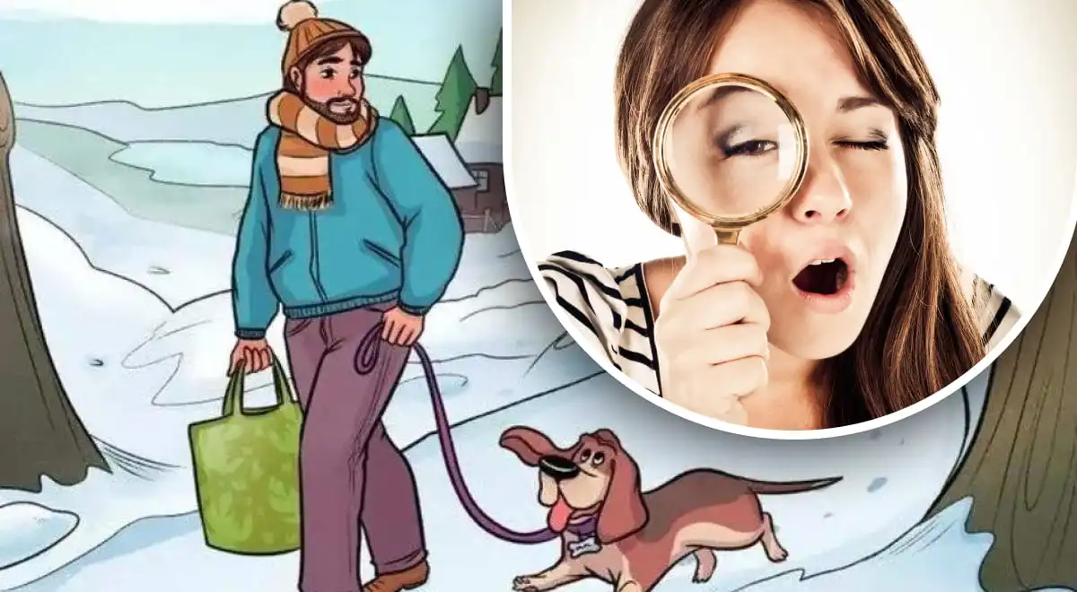 Czy kiedykolwiek miałeś wrażenie, że coś w obrazku jest „nie tak”, ale nie potrafiłeś od razu wskazać, co dokładnie? To właśnie uczucie towarzyszy wielu osobom, gdy patrzą na tę zagadkę. Widzimy sielankową scenę: mężczyzna idzie przez zaśnieżony las, obok niego radośnie kroczy pies na smyczy. Śnieg jest świeży i nienaruszony, a jednak… coś tu nie gra. Twoim zadaniem jest odkrycie tego błędu logicznego w zaledwie 5 sekund. To sprawdzian nie tylko spostrzegawczości, ale i szybkości myślenia.