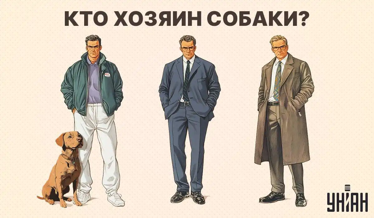 Zacznij od ogólnego spojrzenia. Może właścicielem jest ten, do kogo pies jest najbliżej? A może ten, który się do niego uśmiecha? Nie daj się zwieść pozorom. Prawdziwa odpowiedź ukryta jest w detalu, który ma logiczne uzasadnienie. Spróbuj sam, zanim przejdziesz dalej!