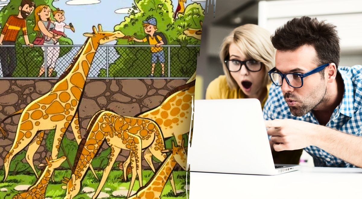 Wyobraź sobie, że jesteś opiekunem w tym zatłoczonym zoo. Twoim zadaniem jest sprawdzić, czy wszystko jest na swoim miejscu. Nagle dostajesz informację, że… ktoś ukrył w wybiegu żyraf dwa dziwne przedmioty. Musisz je znaleźć szybko, zanim zwiedzający je zauważą! Spójrz na tę pełną szczegółów ilustrację. Wśród sierści żyraf, desek ogrodzenia i liści drzew artysta sprytnie ukrył ananasa i motyla. To nie jest proste wyszukiwanie – to prawdziwy test dla twojej uwagi i percepcji.