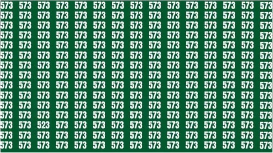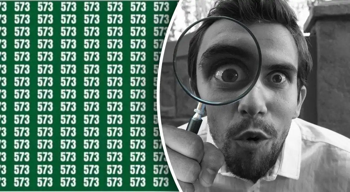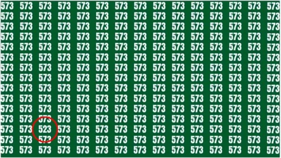 W morzu identycznie wyglądających cyfr 573 ukryta jest inna liczba – 523. Twoim zadaniem jest dostrzec ją w zaledwie 18 sekund. Kluczem nie jest bezładne wpatrywanie się, lecz systematyczne skanowanie wzrokiem, najlepiej dzieląc obraz na mniejsze sekcje.