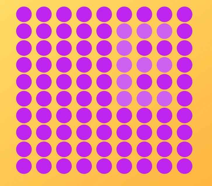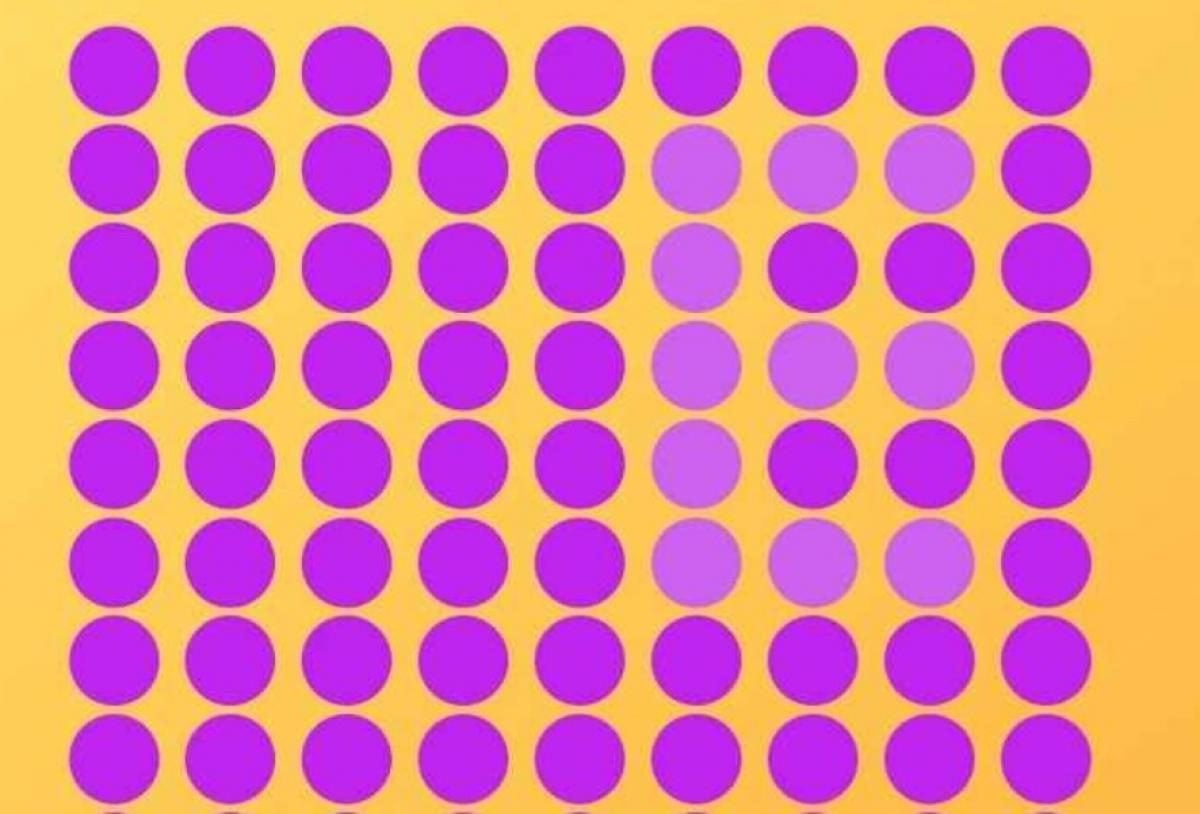 Na obrazie pełnym fioletowych kółek ukryta jest litera „E”. Twoim zadaniem jest ją dostrzec w zaledwie 6 sekund. Sekret tkwi w różnicy odcieni – kształt litery tworzą jaśniejsze elementy na tle ciemniejszych.