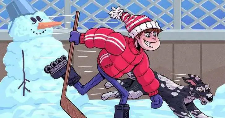 Czy kiedykolwiek miałeś wrażenie, że coś jest nie tak, ale nie potrafiłeś od razu wskazać, co dokładnie? To właśnie uczucie towarzyszy tej zagadce. Widzimy dynamiczną scenę: chłopiec ślizga się po gładkim, błyszczącym lodowisku, a obok niego radośnie biegnie pies. Atmosfera jest idealna. A jednak coś tu nie gra. Twoim zadaniem jest przejrzeć tę pozornie poprawną scenę i znaleźć błąd logiczny, który burzy całą jej spójność. Masz tylko 5 sekund – to sprawdzian Twojej uwagi i szybkości myślenia.