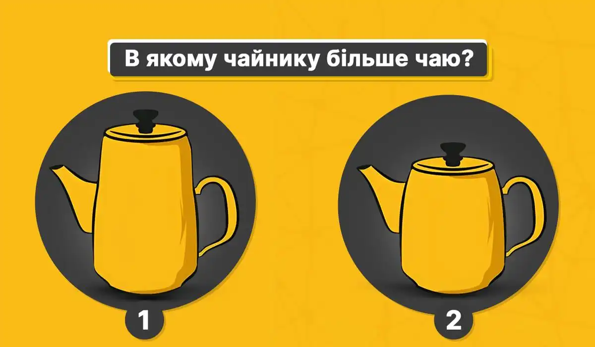 Ta zagadka wizualna testuje nie tylko spostrzegawczość, ale i umiejętność myślenia przestrzennego. Kluczem nie jest ocenianie wysokości czajników, ale zrozumienie, jak ich kształt wpływa na rzeczywistą pojemność. Spróbuj spojrzeć na nie nie jak na naczynia, ale jak na geometryczne bryły.