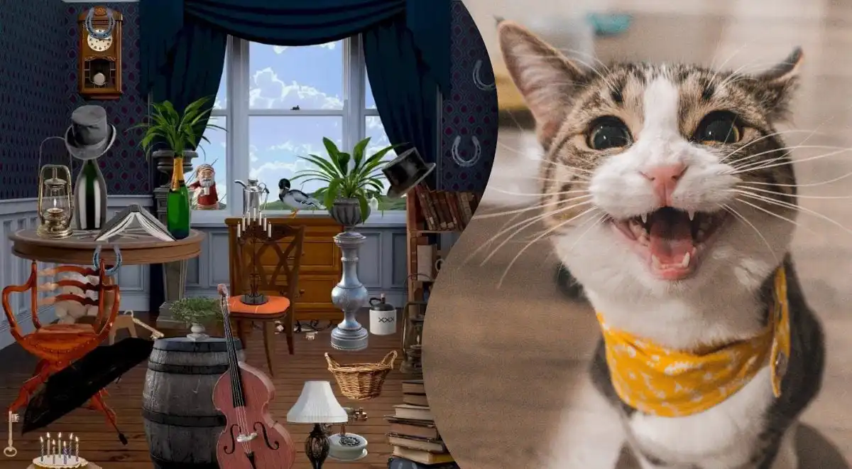 W zatłoczonym pokoju pełnym przedmiotów ukryły się dwa koty. Twoim zadaniem jest je odnaleźć w zaledwie 12 sekund. Kluczem do sukcesu jest systematyczne skanowanie obrazu i niepoddawanie się iluzji pierwszego wrażenia.