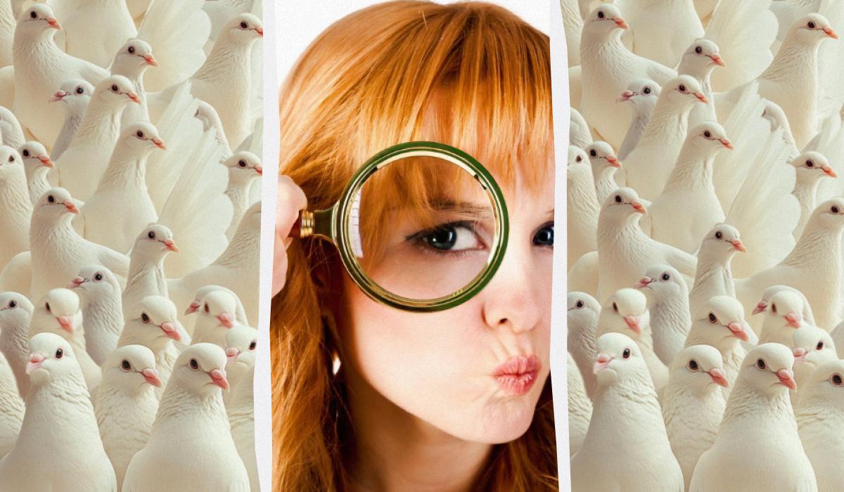 Wśród morza identycznych, białych gołębi ukrył się jeden, który wcale gołębiem nie jest. Twoje zadanie? Znaleźć koguta w zaledwie 5 sekund. Kluczem do sukcesu jest porzucenie skupienia na całości i szukanie drobnej, ale charakterystycznej anomalii w kształcie głowy.