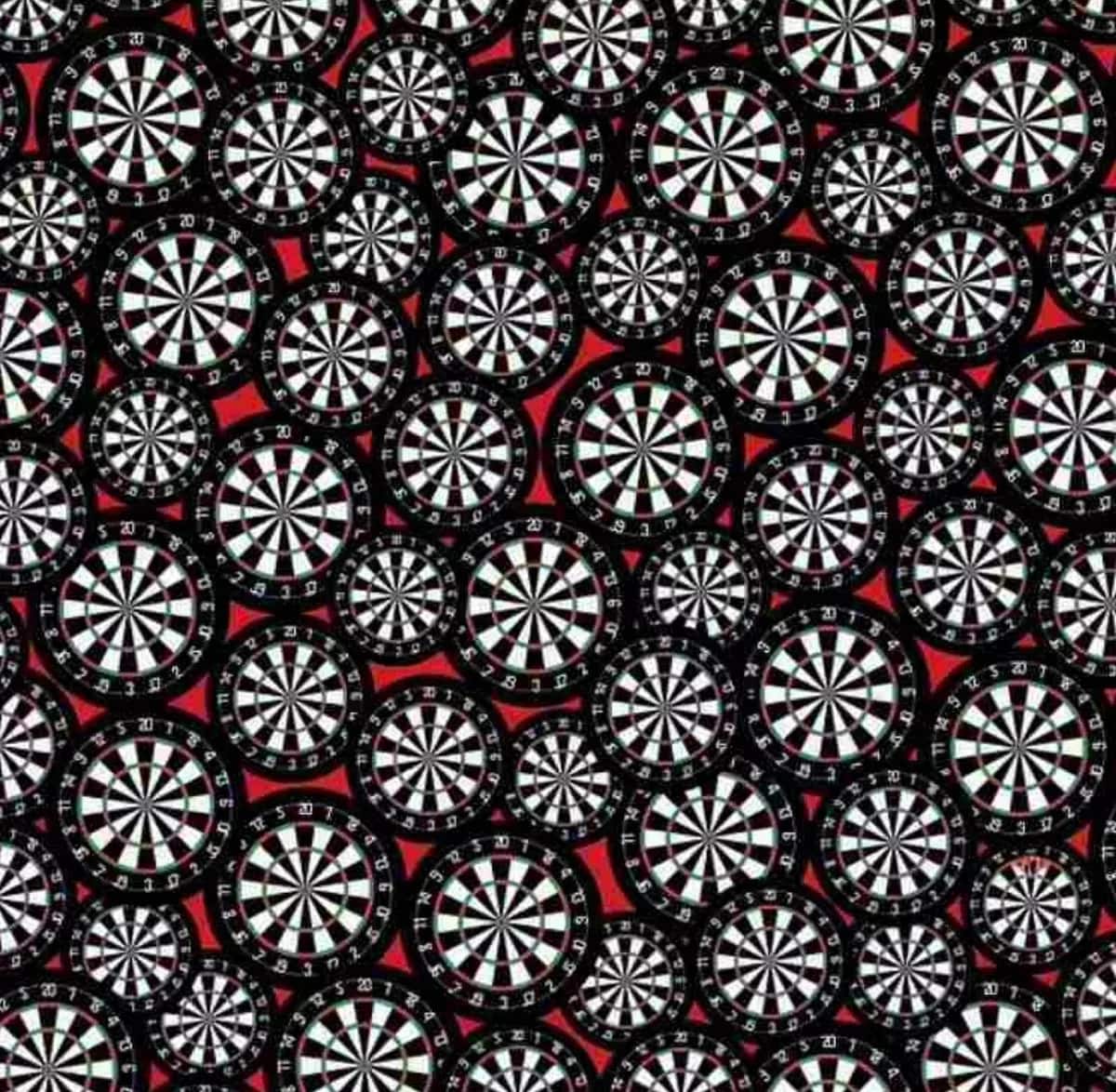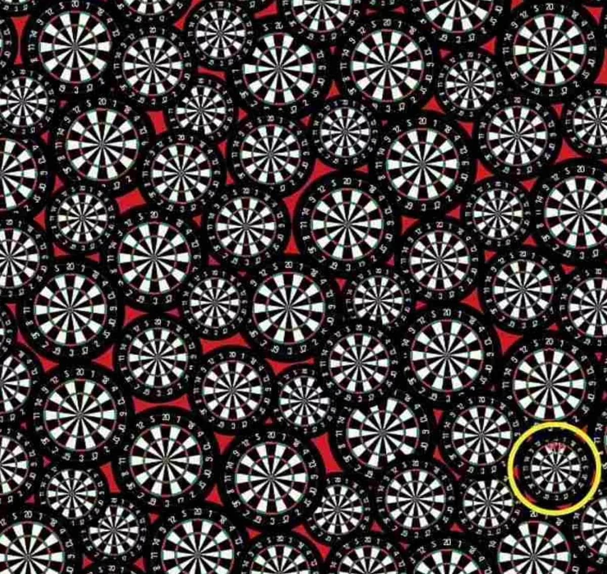 Wśród dziesiątek czerwonych tarcz do rzutek ukryły się trzy prawdziwe, czerwone rzutki. Twoim zadaniem jest je odnaleźć w zaledwie 15 sekund. Kluczem do sukcesu jest zmiana perspektywy i skupienie się nie na kolorze, lecz na charakterystycznym, wydłużonym kształcie.
