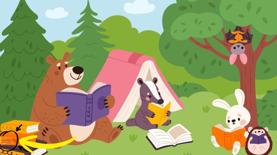 Na obrazku pełnym drzew, namiotu z książki i uroczych zwierząt ukryty jest piórnik. Tylko 1% osób potrafi go dostrzec w zaledwie 7 sekund. Kluczem do sukcesu jest zmiana perspektywy i skupienie się na obszarach, które na pierwszy rzut oka wydają się oczywiste.