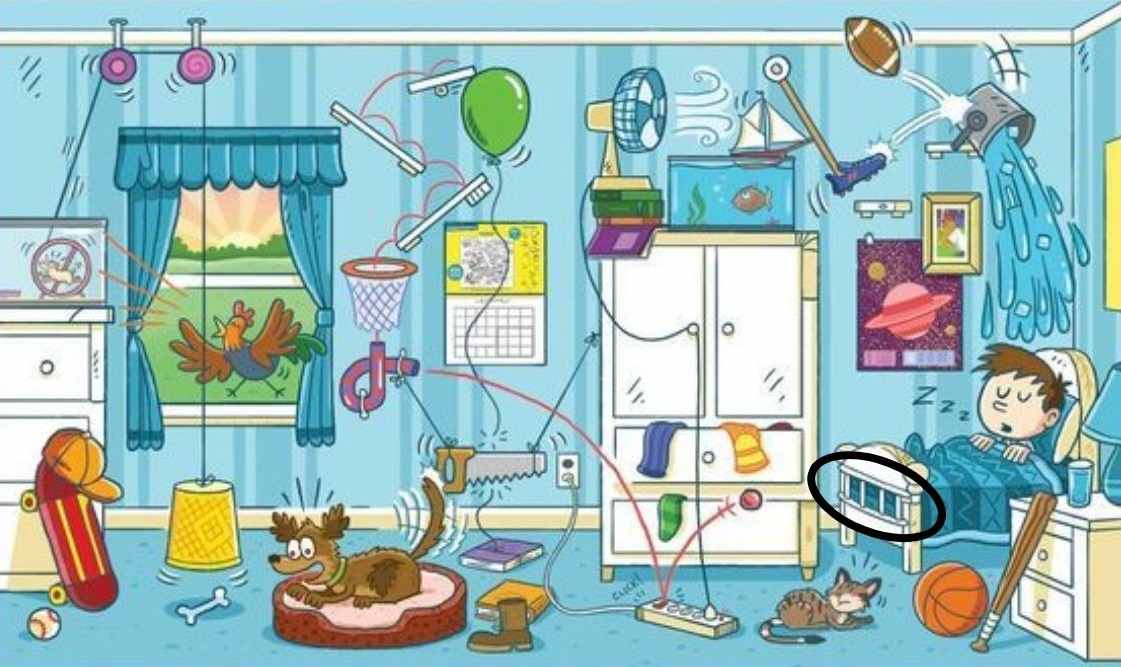 Wśród gąszczu przedmiotów w zagraconym pokoju ukryta jest drabina. Twoim zadaniem jest ją odnaleźć w zaledwie 12 sekund. Kluczem do sukcesu jest zmiana perspektywy i szukanie kształtu, który nie pasuje do otoczenia.