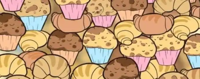 Wśród dziesiątek identycznie wyglądających babeczek ukrył się jeden sprytny kot. Jego główna taktyka to doskonałe wtopienie się w tłum, ale pewien szczegół