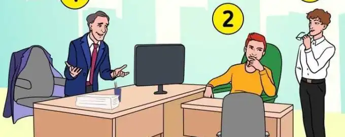 Na obrazku widzimy trzech mężczyzn przy stole, ale tylko jeden z nich jest prawdziwym szefem. Kluczem do rozwiązania jest nie ich wyraz twarzy, a drobny