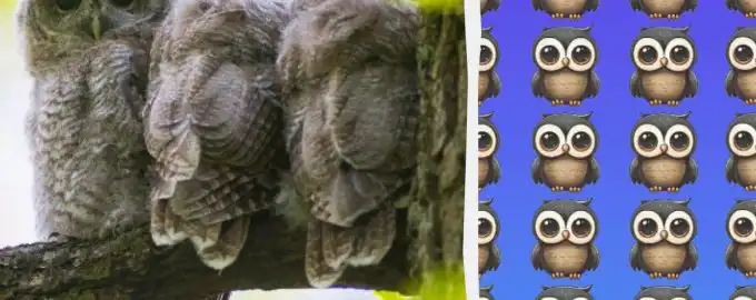 Wśród wielu identycznych sów ukrył się jeden wyjątkowy ptak, różniący się drobnym, ale kluczowym szczegółem. Sekret rozwiązania tkwi w porównaniu kierunku