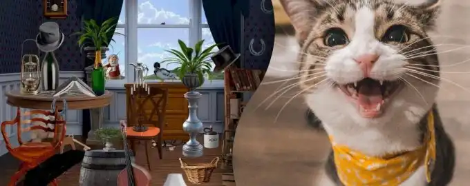 W zatłoczonym pokoju pełnym przedmiotów ukryły się dwa koty. Twoim zadaniem jest je odnaleźć w zaledwie 12 sekund. Kluczem do sukcesu jest systematyczne