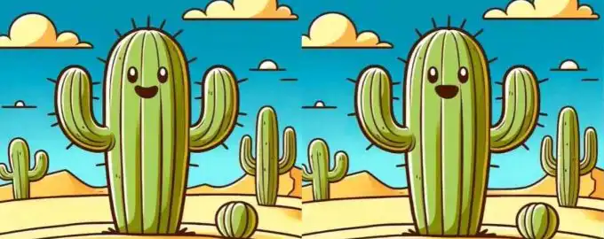 Dwa pozornie identyczne obrazki z kaktusami skrywają trzy subtelne różnice. Wyzwanie polega na znalezieniu ich wszystkich w zaledwie 11 sekund.