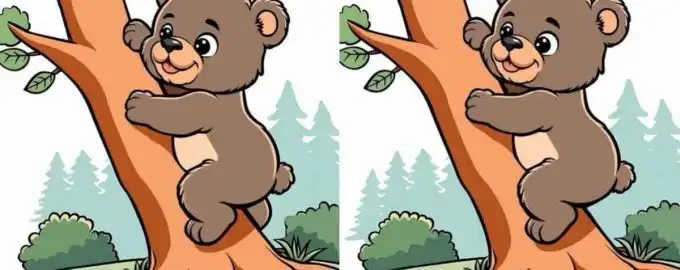 Przed tobą wesoła łamigłówka na spostrzegawczość: na dwóch pozornie identycznych obrazkach uśmiechniętego misia na drzewie kryją się trzy subtelne różnice. Twoje zadanie?