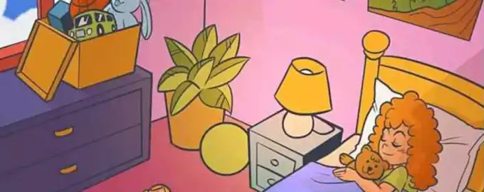 W sypialni śpiącej dziewczynki ukryła się zielona żaba. Choć na pierwszy rzut oka jej nie widać, jest bardzo blisko – kluczem do sukcesu jest zmiana perspektywy i uważne.