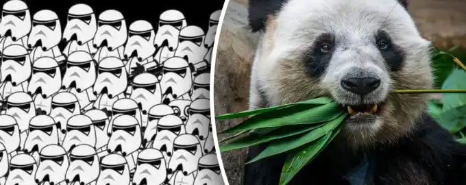 Na obrazku pełnym czarno-białych wzorów ukryła się mała panda. Twoim zadaniem jest odnaleźć ją w zaledwie 8 sekund. Kluczem do sukcesu jest porzucenie
