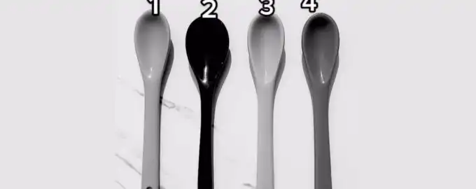 Na obrazku widnieją cztery łyżki w odcieniach szarości, ale tylko jedna z nich jest w rzeczywistości czerwona. Twoim zadaniem jest odkrycie, która to