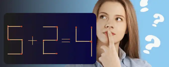 Przed tobą klasyczna łamigłówka z zapałkami: 5 + 2 = 4. Równanie jest oczywiście błędne. Twoim zadaniem jest przesunięcie tylko jednej zapałki, aby stało się poprawne.