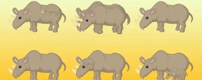 Na pierwszy rzut oka obrazek wydaje się pokazywać stado nosorożców, ale ich liczba to pułapka dla naszego mózgu. Kluczem do rozwiązania jest przełamanie