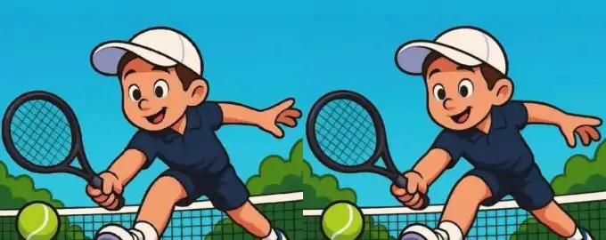 Przed Tobą klasyczna łamigłówka na spostrzegawczość: dwa pozornie identyczne obrazy tenisisty, między którymi ukryto trzy subtelne różnice. Twoje zadanie?