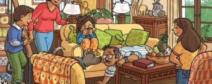 Rodzina poszukuje zagubionych przedmiotów – szczotki i pędzla – w swoim domu. Czy twoje oko jest na tyle bystre, by dostrzec je wśród wielu szczegółów w zaledwie 22.