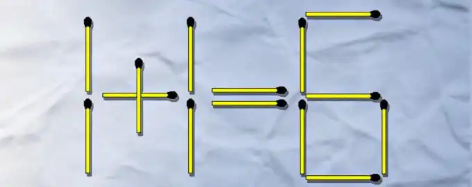 Twoim zadaniem jest naprawienie nieprawidłowego równania 1+1=6, używając zapałek. Możesz wykonać tylko dwie operacje: wyrzucić jedną zapałkę i przestawić drugą.