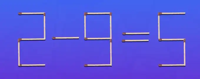 Przed tobą klasyczna łamigłówka z zapałkami: równanie 2-9=5 jest błędne. Twoim zadaniem jest przesunięcie tylko jednej zapałki, aby stało się poprawne.
