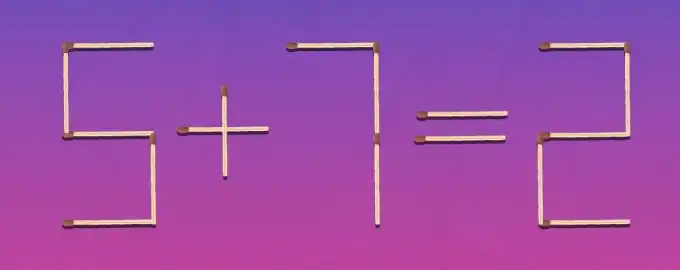 Przed tobą klasyczna łamigłówka z zapałkami: równość 5+7=2 jest oczywiście błędna. Twoim zadaniem jest przesunięcie tylko jednej zapałki, aby stała się