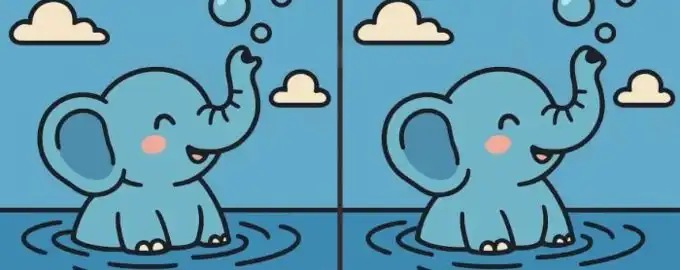 Przed Tobą klasyczna łamigłówka wizualna: dwa pozornie identyczne obrazy słonia w wodzie, które kryją trzy subtelne różnice. Twoje zadanie?