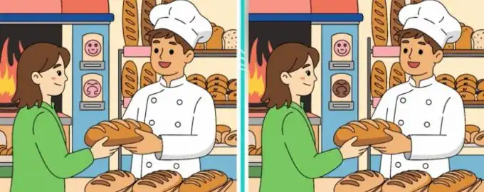 Przed tobą klasyczna łamigłówka na spostrzegawczość: dwa pozornie identyczne obrazki piekarza, między którymi artysta ukrył trzy subtelne różnice. Twoje zadanie?