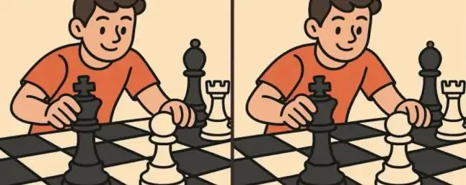 Przed tobą klasyczna łamigłówka na spostrzegawczość: dwa pozornie identyczne obrazy szachisty kryją trzy subtelne różnice. Twoje zadanie?