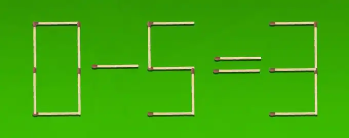 Przed tobą klasyczna łamigłówka z zapałkami: błędne równanie 0-5=3. Twoim zadaniem jest przestawienie tylko dwóch zapałek, aby stało się ono matematycznie poprawne.