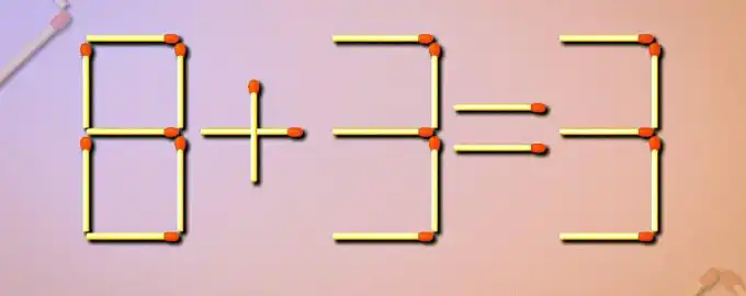 Masz tylko 10 sekund, aby naprawić błędne równanie zapałkowe 8+3=3, przestawiając tylko jedną zapałkę. Kluczem jest spojrzenie na liczby nie jako stałe