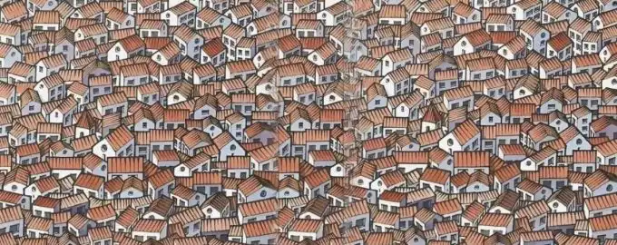 Wśród geometrycznych domków kryje się sprytny kot. To nie tylko test wzroku, ale sprawdzian uwagi i umiejętności dostrzegania nieregularności w pozornie